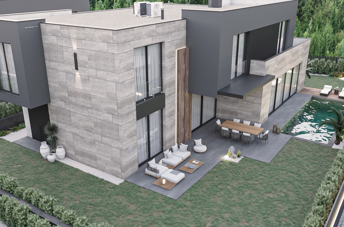 Sasalı 4 Evler, yatay mimari anlayışıyla tasarlanarak zarafet ve konforu bir arada sunuyor. Dışarıdan tek katlı bir yapı görünümüne sahip olan bu özel villalar, iç mekandaki iki katlı yapısıyla hem ferah hem de fonksiyonel yaşam alanları yaratıyor. Modern çizgileri ve özgün tasarımıyla seçkin bir yaşam tarzını yansıtan proje, mimari detaylarıyla fark yaratıyor.